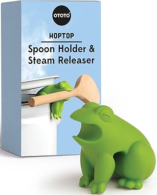 OTOTO New HopTop Frog Spoon Holder for Stove Top - Spoon Rest for Stove Top and Steam Releaser, Cute Kitchen Accessories, Cooking, Cool Gadgets, Fun Kitchen Gifts, White Elephant Gifts