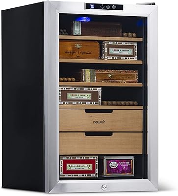 NewAir Cigar Humidor Climate Controlled with 400 Cigar Capacity - Digital Heating and Cooling Feature - Includes Spanish Cedar Shelves and Lock - CC-300H - Stainless Steel