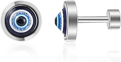 Evil Eye Stud Earrings Stainless Steel Blue Eye Geometric Earrings Protection Amulet Success Prosperity Jewelry for Men Women Unisex