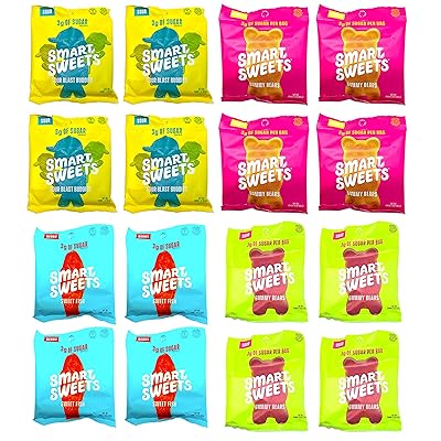 16 Pack Variety Keto-Friendly Gummy Bears - Stevia Sweetened Fruity Gummy Bears, Sour Gummy Bears, Sweet Fish, Sour Buddies, Low Sugar, Low Carbs 1.8 Ounce