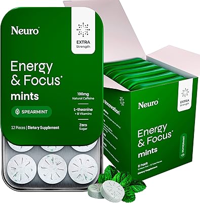 Neuro Energy & Focus Mints, Extra Strength - Sugar Free Breath Mints with 100mg Natural Caffeine, B Vitamins & L-Theanine - Vegan Brain Supplement for Exercise, Study & Daily Focus - Spearmint, 72 ct