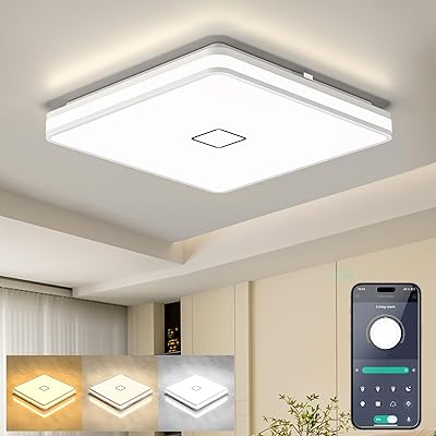 Airand 12.8 Inch Smart Ceiling Light, Dimmable LED Ceiling Light 3000K-5000K CCT with App Control, 24W 2050LM Square led Flush Mount Ceiling Lights for Living Room Bedroom